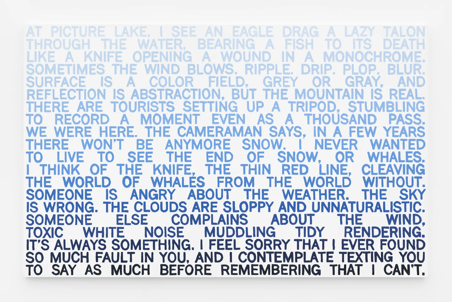 For this project, I asked 5 writers and curators to each write a wall text from which I would produce a painting, thus reversing the standard relationship of generative and reactive forces.